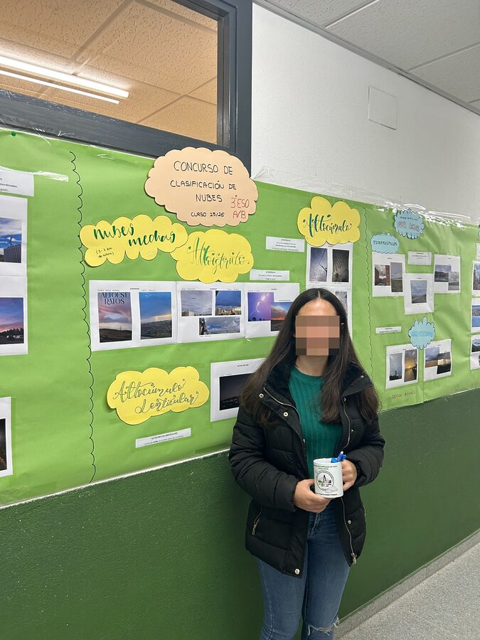 Una vez finalizado el plazo, la docente revisó todas las imágenes enviadas, registrando cuántas fotos había mandado cada estudiante, cuántas habían sido clasificadas correctamente y cuántos tipos distintos de nubes aparecían. El/La alumno/a que hubiera enviado el mayor número de nubes diferentes y correctamente clasificadas resultó ganador/a del concurso. El premio consistió en una taza serigrafiada con el logo del instituto, el título del concurso y varias ilustraciones de nubes.